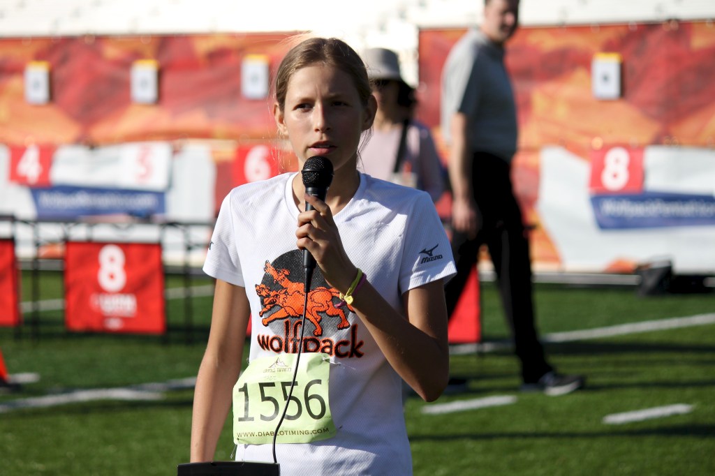 Kira Bardin (and her dog Wesley) won the 1500-Meter Race Walk, setting a new meet record!