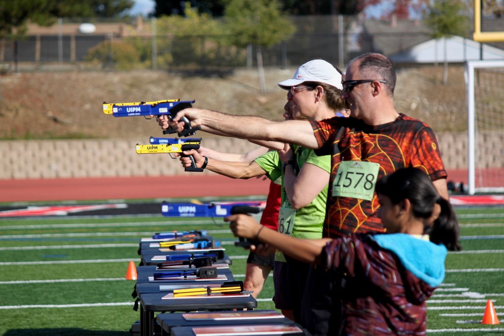 The start of Event #6, the 2 x 400 Individual Masters (ages 40-99) Laser-Run, was intense! Kirt Iverson won gold, David Moulton won silver, and Nicolas Sallembien won bronze.