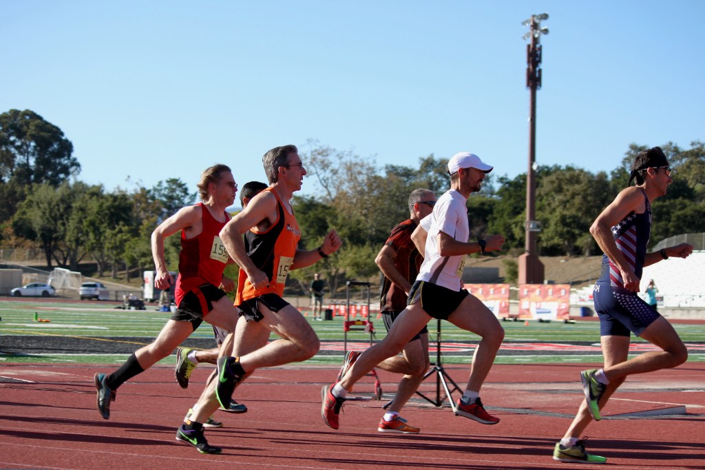 Erik Van Der Burg (age 55) won Event #3, the 800-Meter Run, with a time of 2:20.80, holding off Bob McDonald, Kirt Iverson, and Mike Norcia. The top four finishers in the 800 were 49 or older!