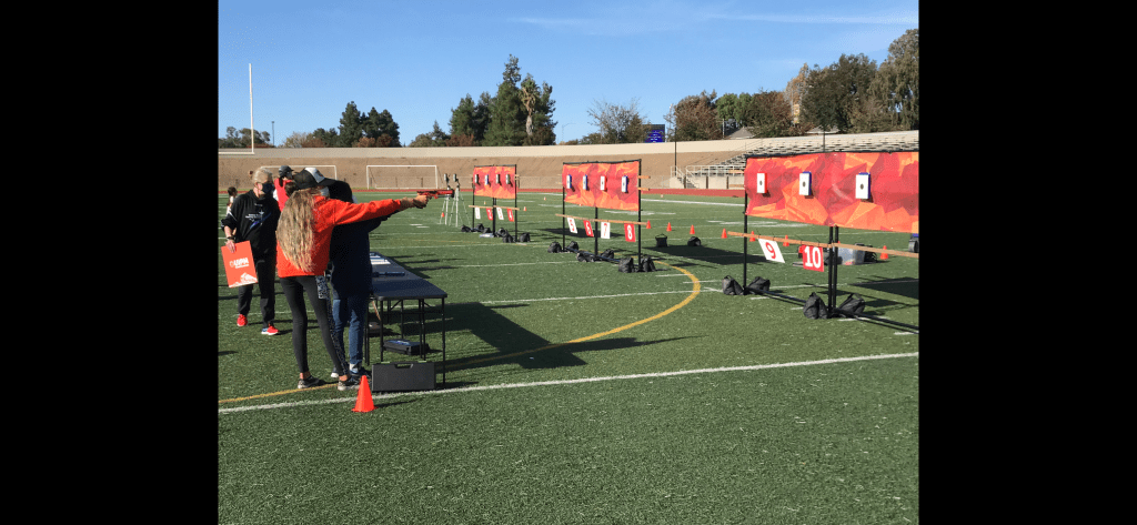 It took longer than we expected, but thanks to our volunteers, including Tasaria Kilpatrick, we finally got the entire laser-range set up–12 targets plus one reserve target–and opened it for practice.